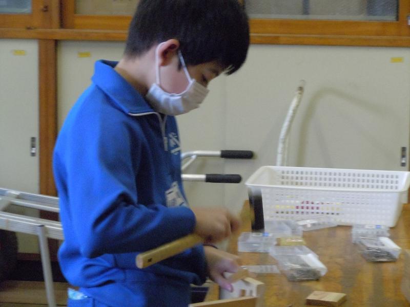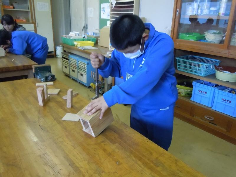 2019年2月8日 13時30分本日の4年生の図画工作は、木材を使っての作品作り「ギコギコクリエーター」