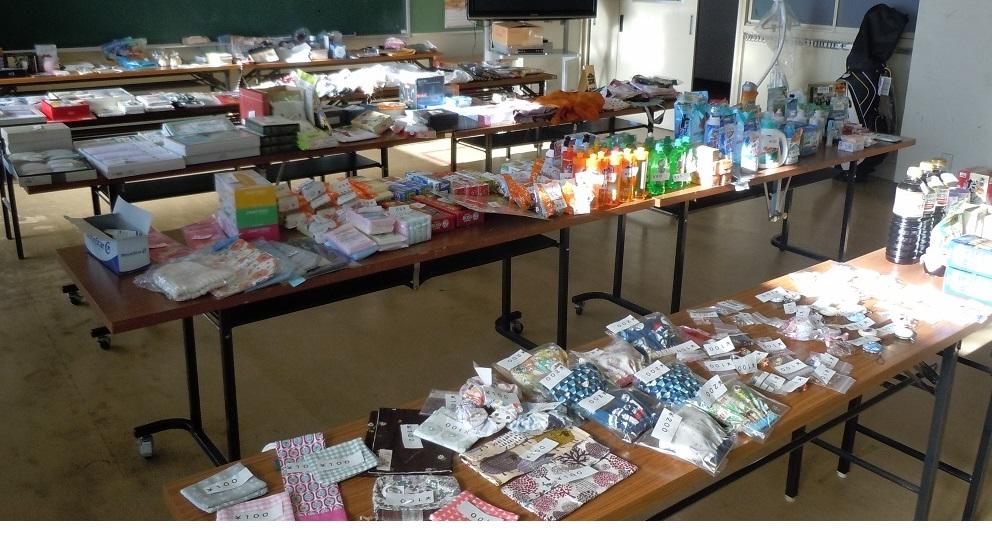 学習発表会当日に行われる、PTA主催のバザーに向けてたくさんの出品がありました。