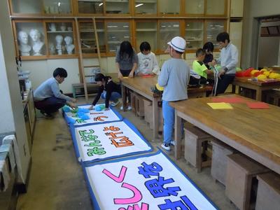 どの学年も本番に向けて練習にも熱が入ります。今年のスローガンの横断幕も、係の子ども達が見事に完成させました。練習の様子もちょっとだけお見せします。