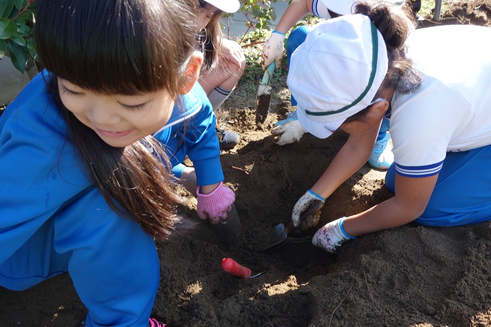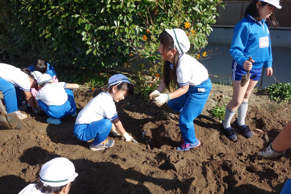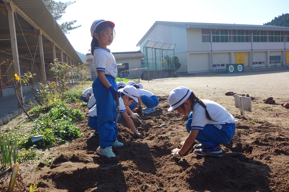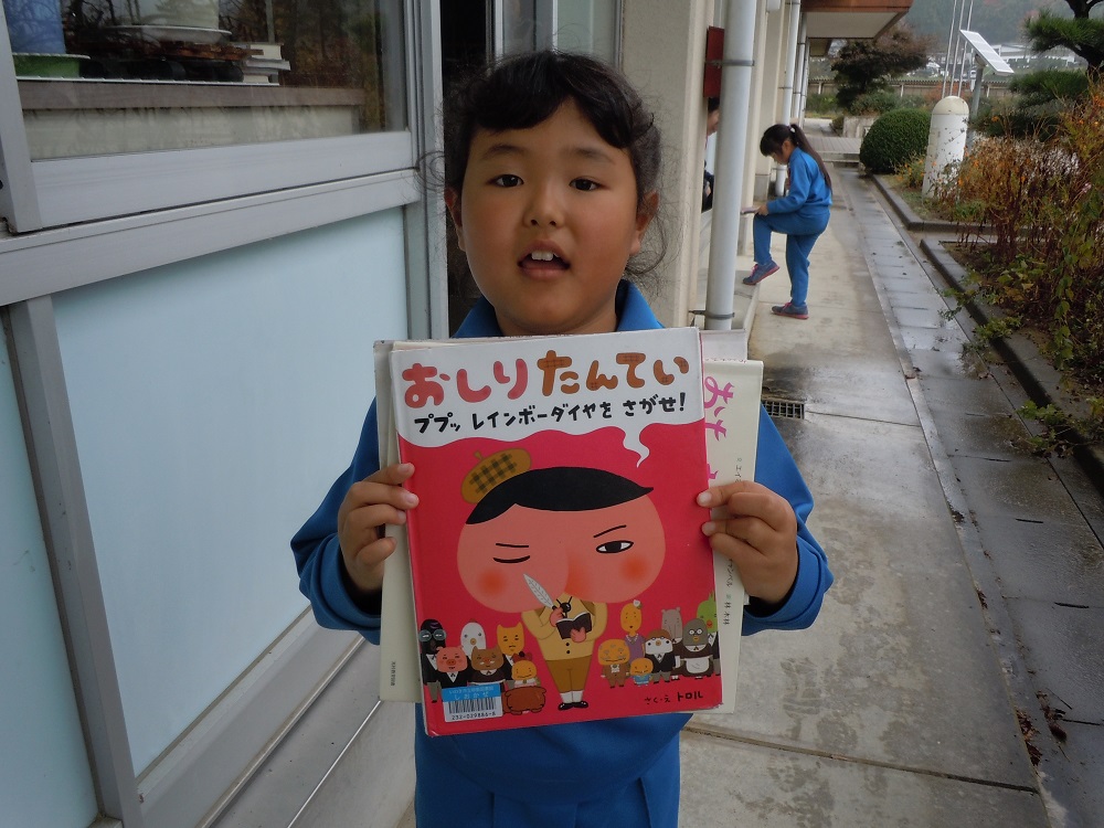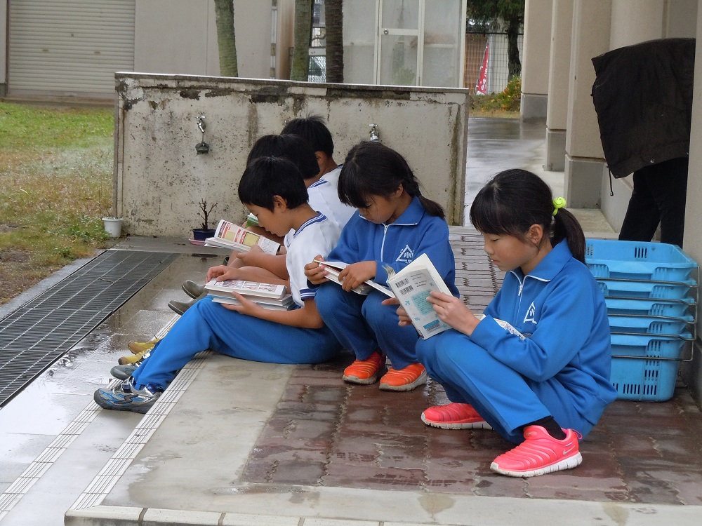 次は3年生。好きな本を選ぶと、ところかまわず玄関先で本を開きます。本校の子ども達は読書が大好き。