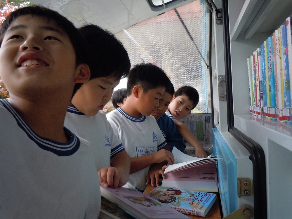 早速やってきたのは2年生です。車に乗り込むと一目散、お目当ては・・・争うように手にした本の題名は「おしりたんてい」今ちょっとしたブームです。