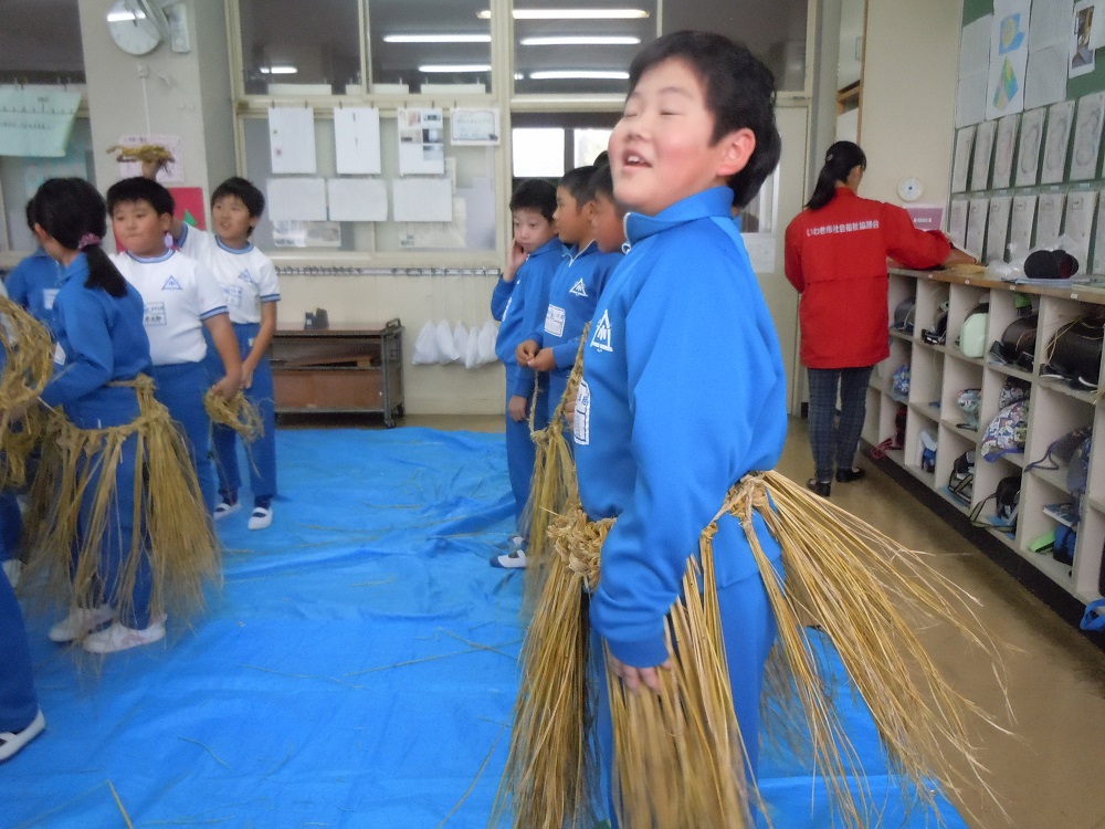 完成した「こしみの」は、学習発表会のダンスの衣装として使用する予定です。乞うご期待!