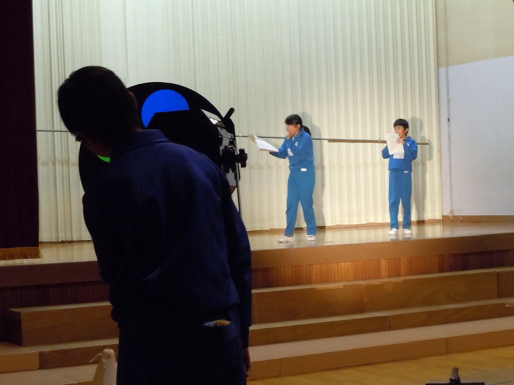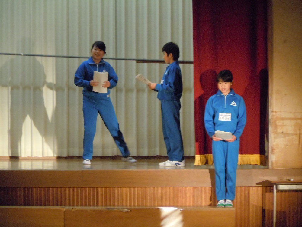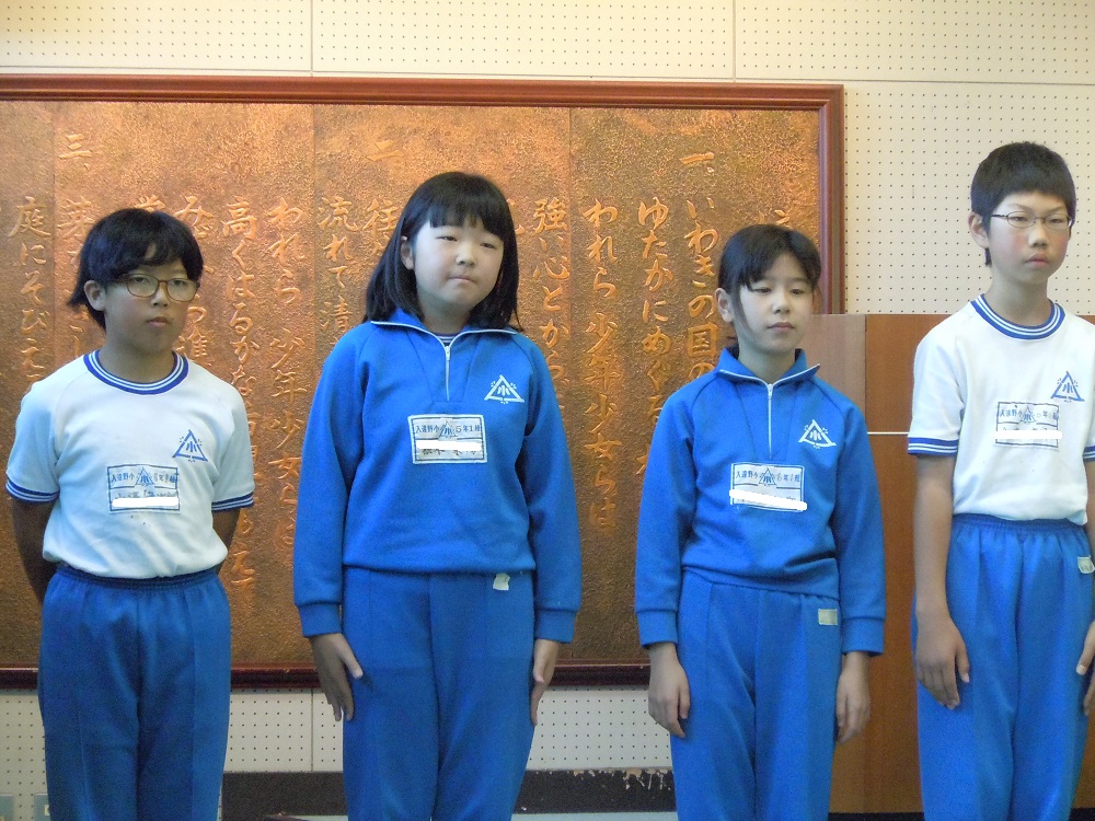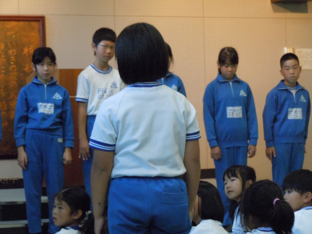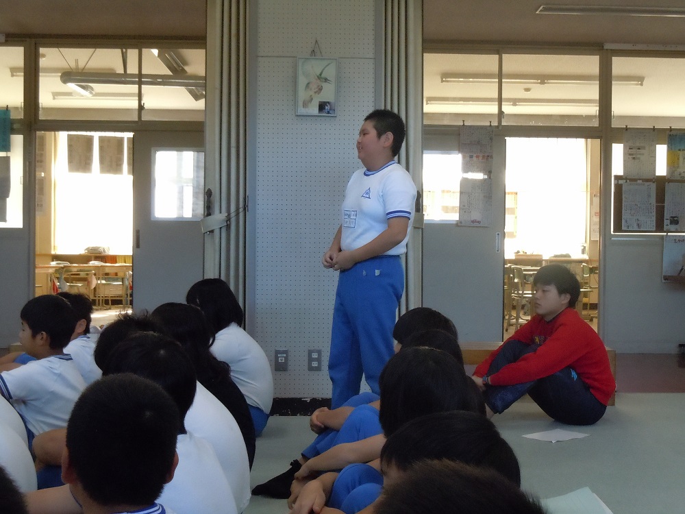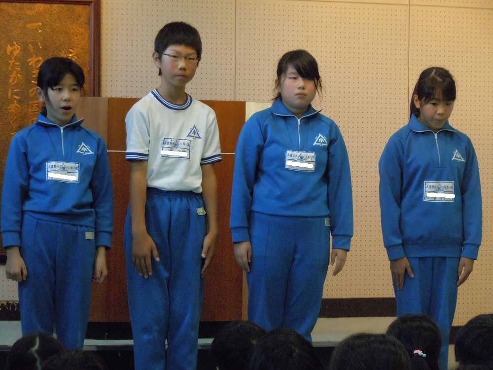 詩の音読を,6年生全員による「群読」として発表しました。長文をしっかり暗記した6年生の発表は、他の学年の児童からも感想が多く寄せられる、堂々としたものでした。