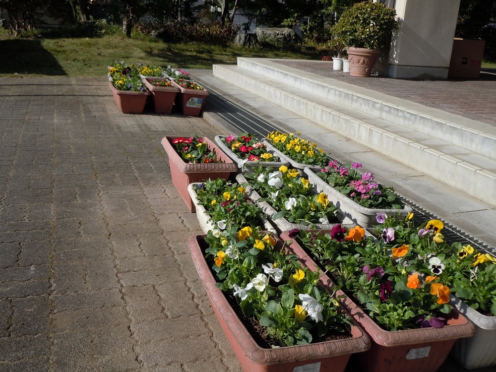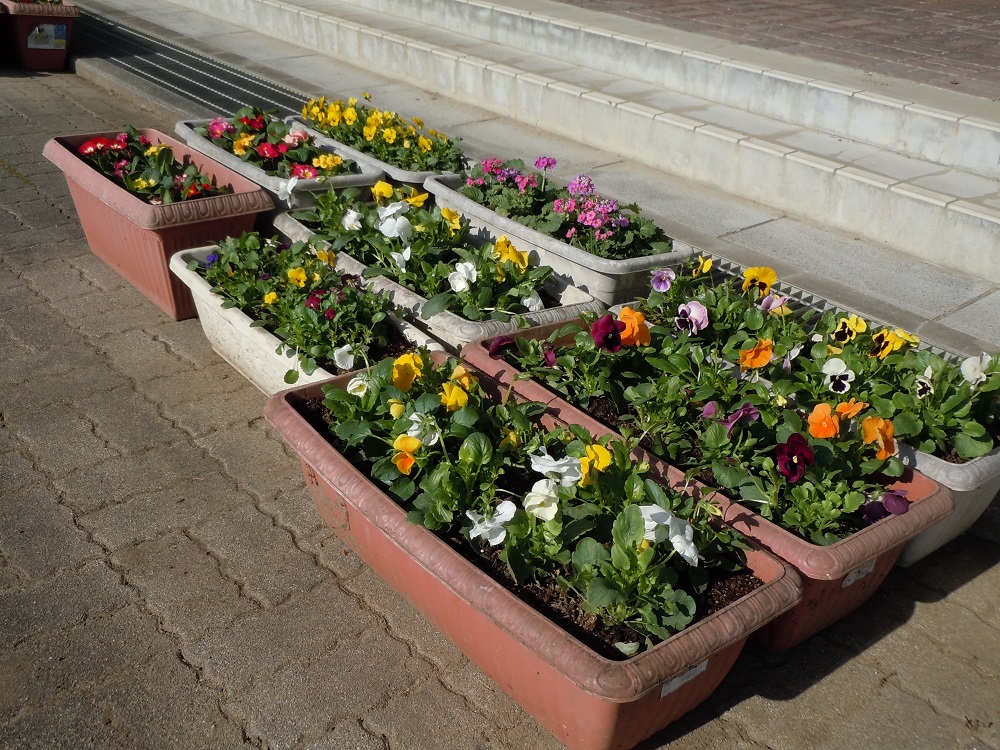 セブンイレブンより寄贈されらプランターいっぱいの草花。