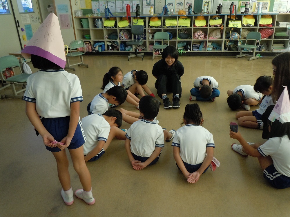 ハンカチ落としゲームに夢中の1年生です。ハンカチ落としは世界共通のゲーム?