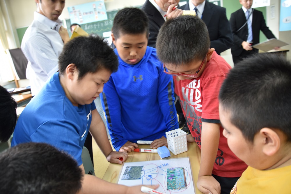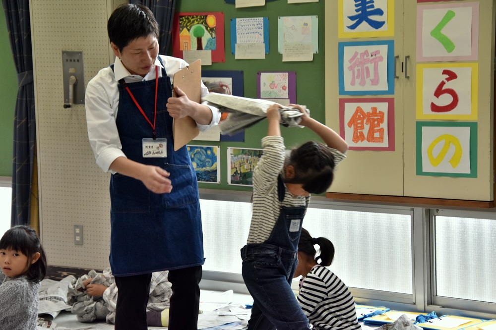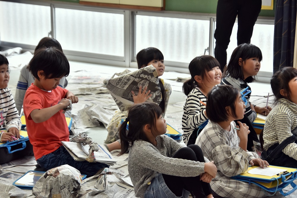 3つの学年の授業は、どの会場も50名近くの参観者に囲まれ大賑わい。子ども達は、はじめこそ気になっていたようですが、しばらくするといつも通りの授業。大好きな図工の授業を大いに満喫した子ども達でした。
