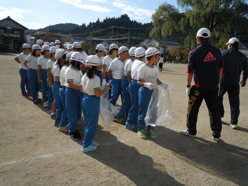 全校生が学年をペアにして、3つの方向(東山・前田・関屋方面)に分かれてゴミ拾いを中心に行う活動ですが、