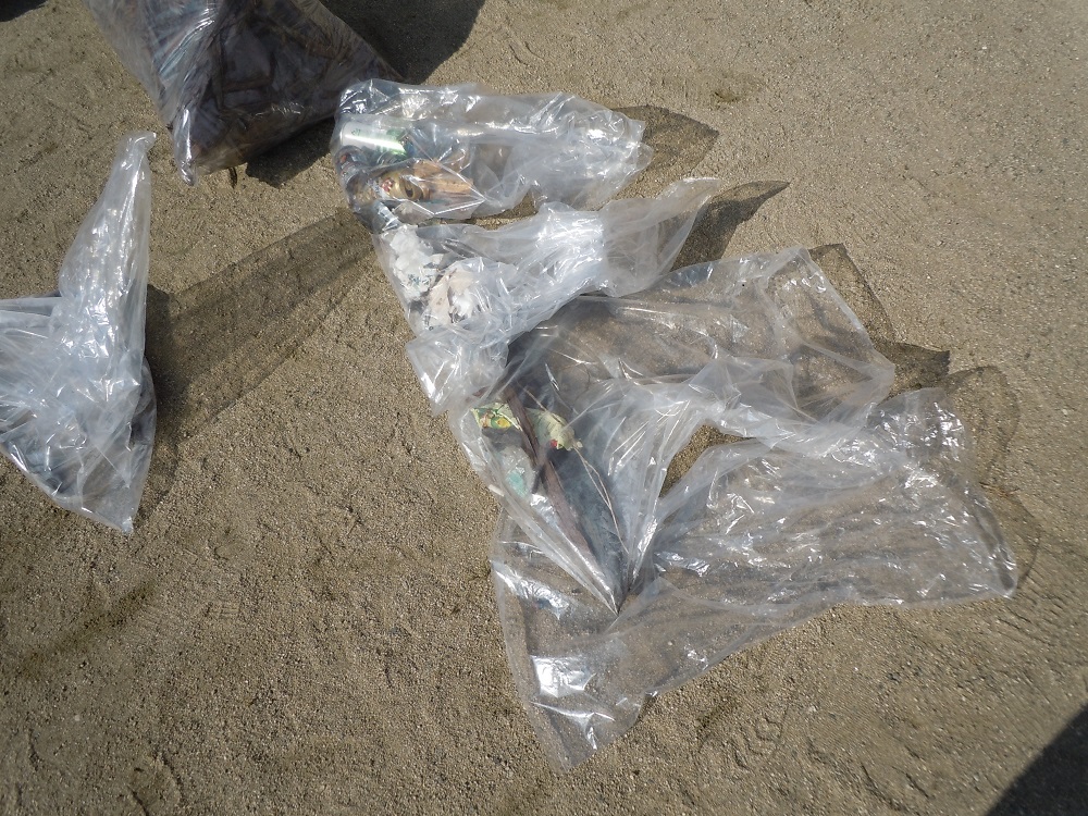 活動の最後は集めたゴミを前に、係の教師から「ゴミを拾うことも大切ですが、ゴミを捨てないことも大切です。」という話がありました。
