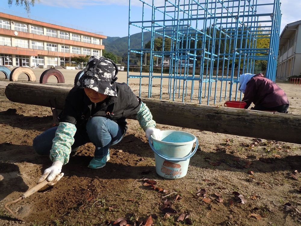 また、この日の早朝には婦人会のみなさんがボランティアで、学校の敷地内の除草作業を行ってくださいました。