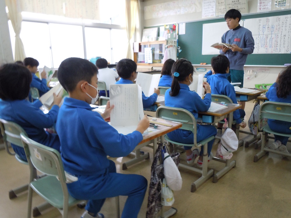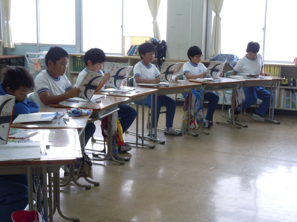 4年生は「ごんぎつね」文章を分担したきれいな音読が心地よく流れます。