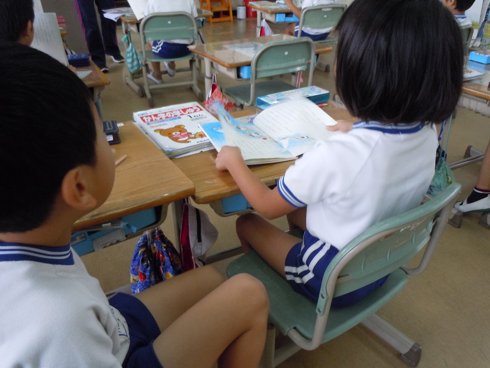 1年生は「くじらぐも」元気な群読の声が廊下にも響きます。