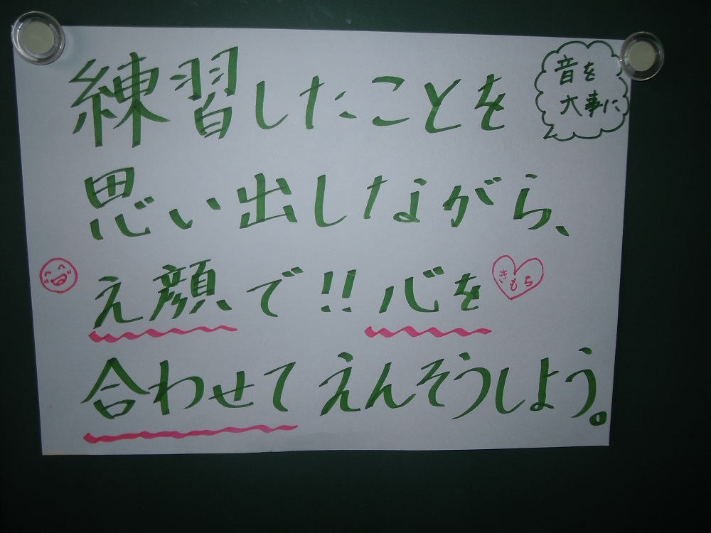 みなさんに発表を聴いていただく事はできませんでしたが、学習発表会では同じものを披露す予定ですので、どうぞご期待ください。また、係でお手伝いいただいた保護者のみな様ありがとうございました。