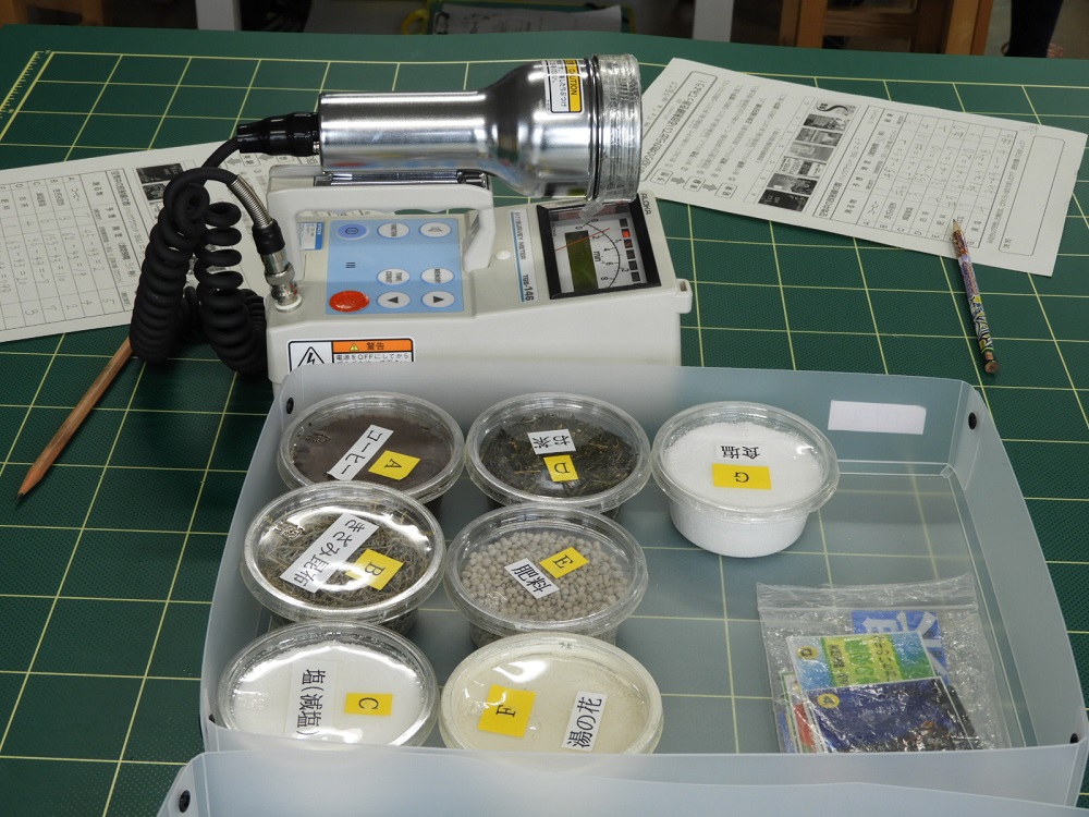 体験研修は「身の回りのものを測定してみよう」というもので、内容は、身の回りのものから放射線が出ていることを学び、自然放射線の存在を実感するというものです。
