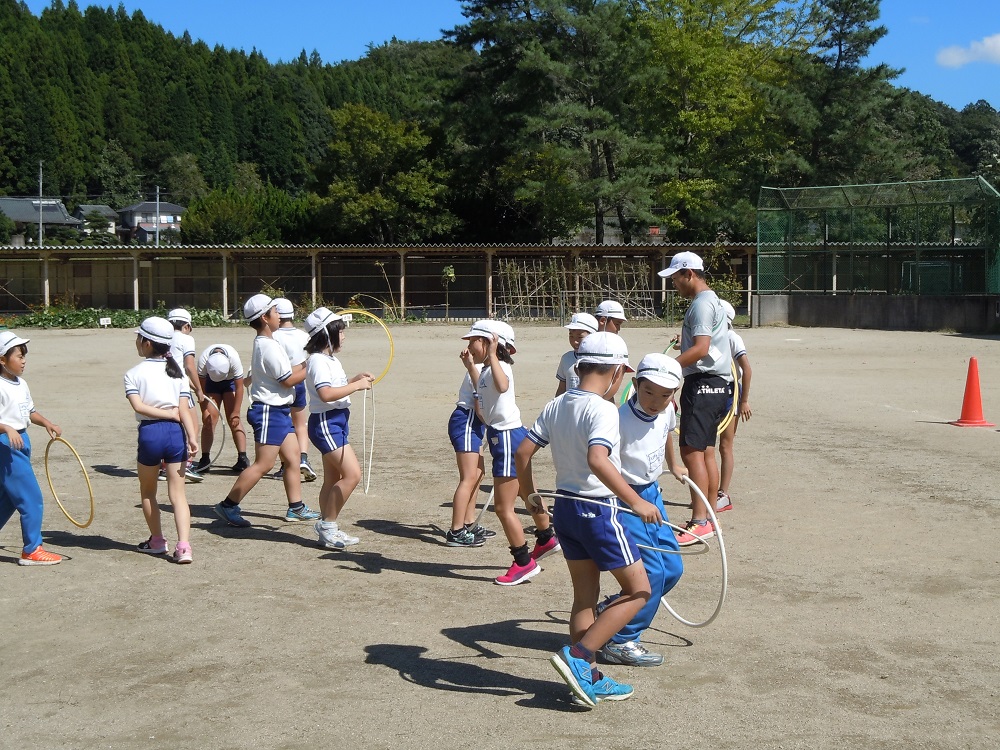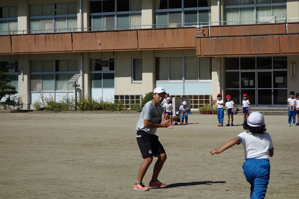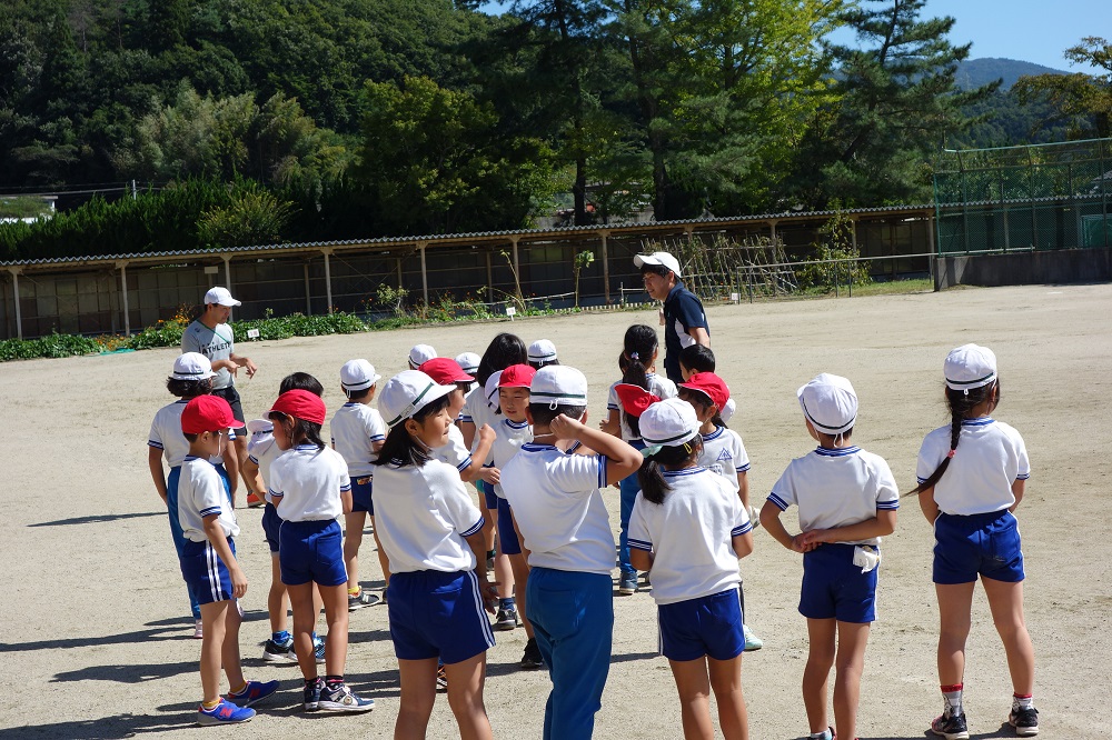 本日は、体育専門アドバイザーお二人(金田さん柴崎さん)を迎えて,いつもとはひと味違った体育の授業を行っています。