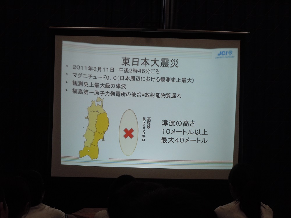 東日本大震災にかかわる学習ですが、当時の災害の様子やこれまでの復興、復興に携わった人々からの様々な支援について、映像や音楽を交えて分かりやすい説明をいただきました。