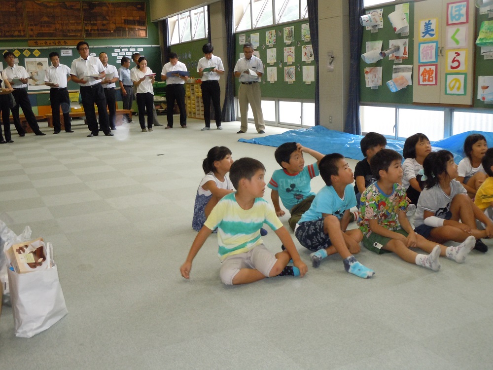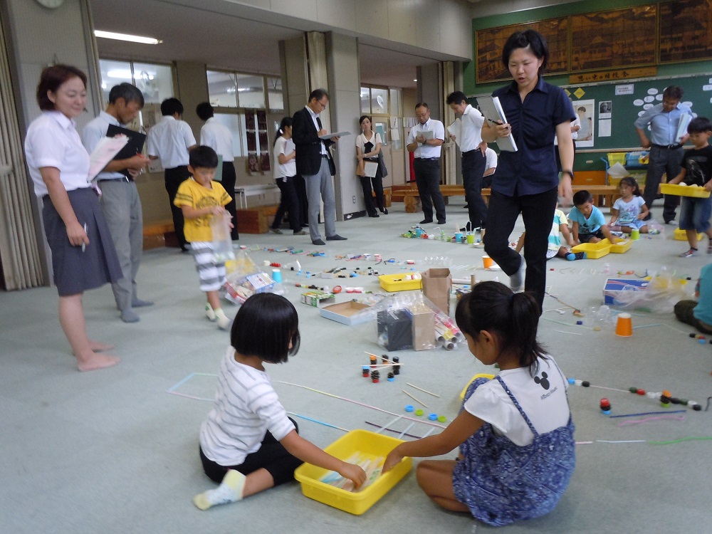 市内の小学校の先生方と入遠野中の先生方が参観する中、自由に伸び伸びと活動した1年生でした。