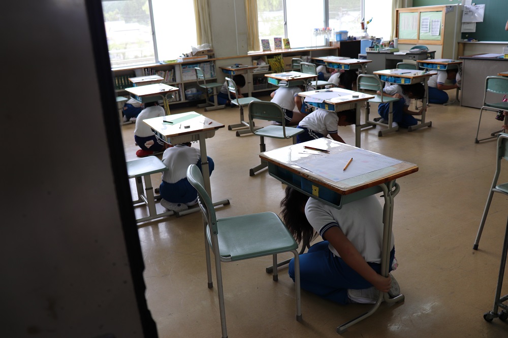 この後、「シェイクアウトふくしま」(簡単な地震想定訓練)も実施しました。