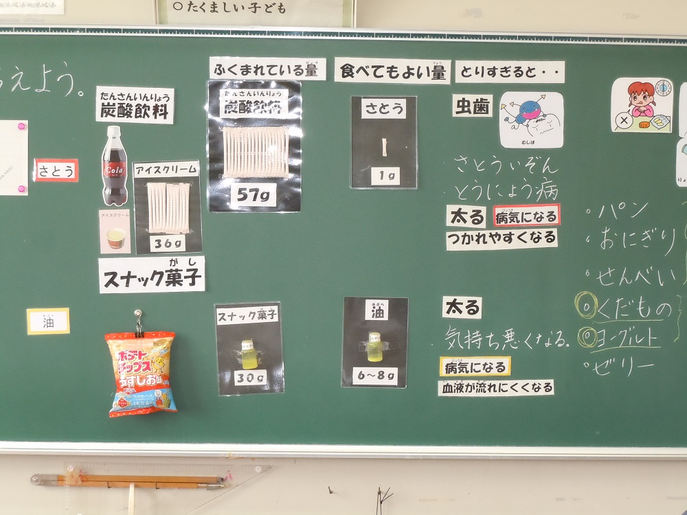 更に、栄養教諭の新妻先生を講師に迎えて4・6年生が実施した食育教育はさしずめ「食欲の秋」というところでしょうか。