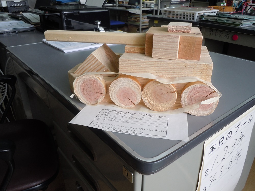 児童生徒土工作コンクール:3年鈴木叶琉さん、5年佐藤元春さん、6年小澤孝次郎さん。