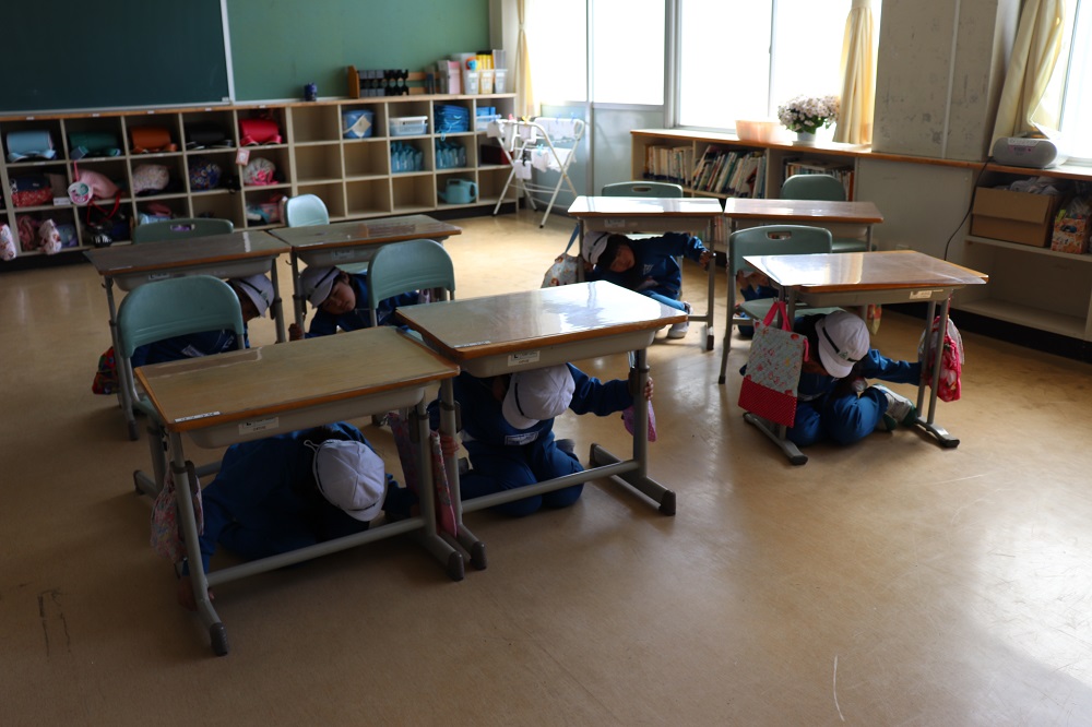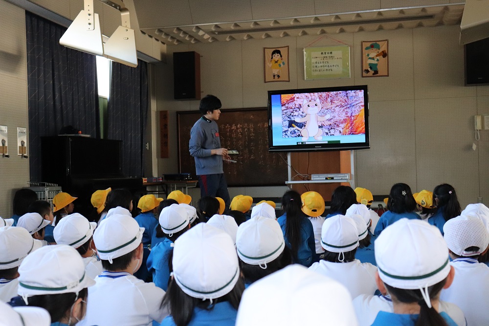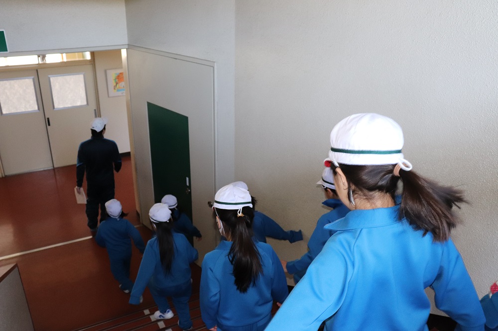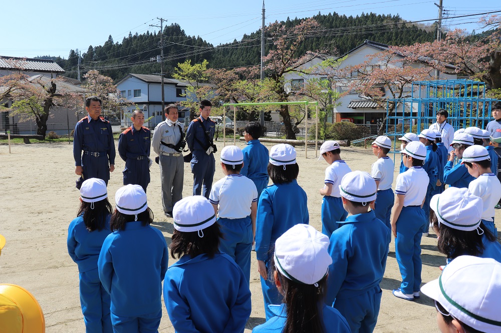 4月10日(火)の2校時に、避難訓練を行いました。遠野分遣所から4名の所員をお招きし、地震時の避難の仕方について、指導を受けました。その後、全員で地震のVTRを見たあと、各教室でまとめの学習をしました。