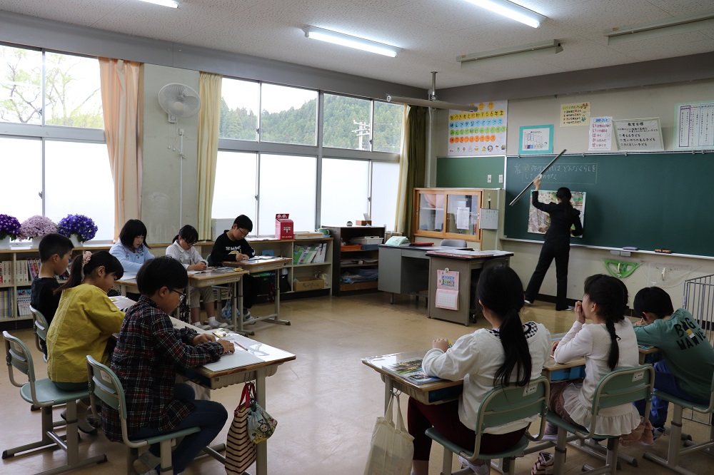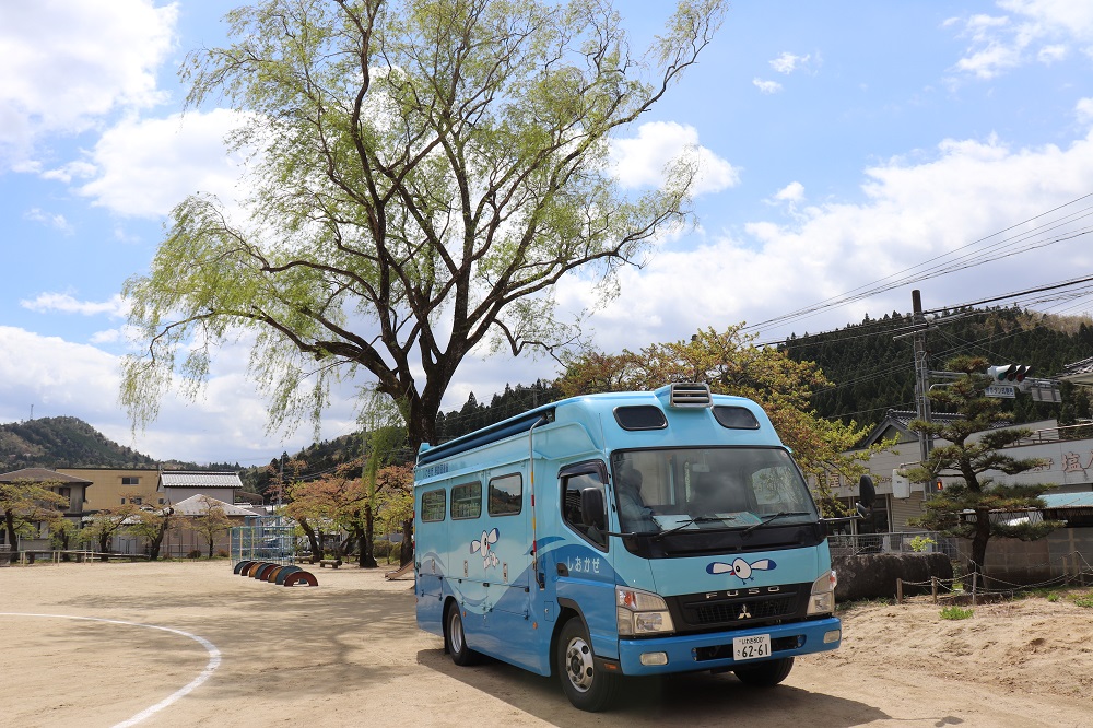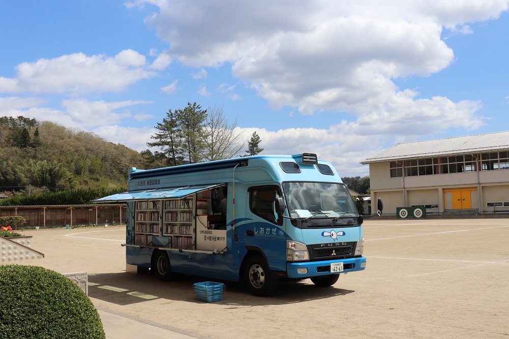 本校では、毎月1回いわき市の移動図書館しおかぜ号が来てくれます。全校児童がたいへん楽しみにしています。
