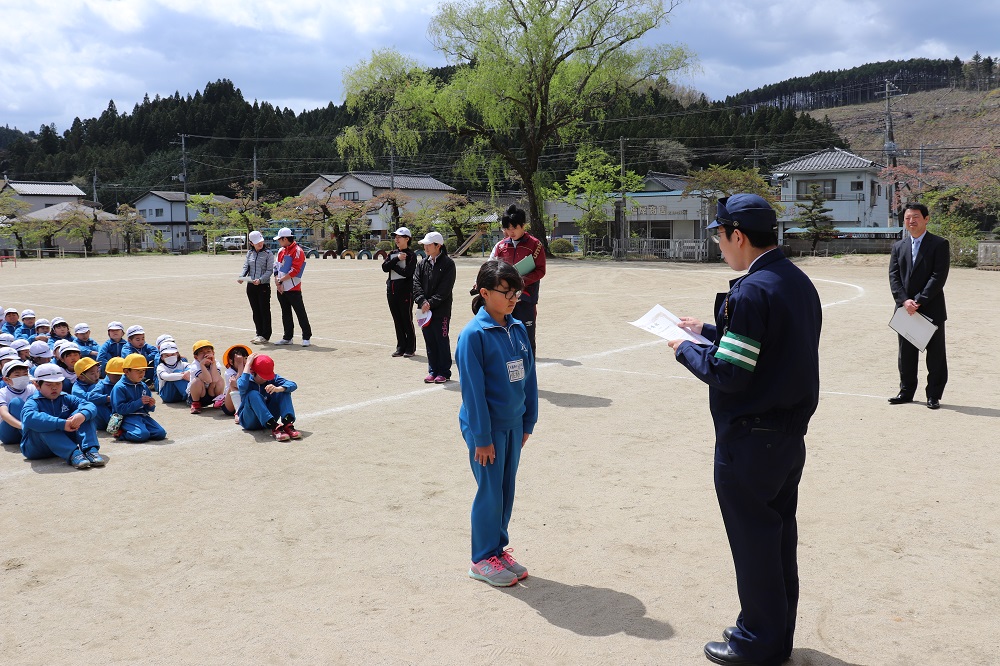 4月13日(金)の2校時に、交通教室を行いました。いわき南警察署の鎌田さんをお招きし、交通安全の大切さを具体例をあげて、指導いただきました。その後、全児童で横断歩道の歩き方を実際に行いました。