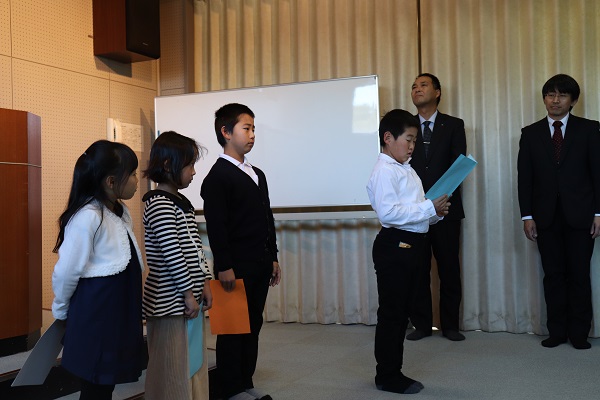 1~4年生の代表児童が2学期の振り返りと冬休みに楽しみなことについて発表をしました。