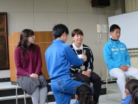 情報委員会の子ども達によるインタビュー形式で進められ、今までなかなか聞けなかった質問にたくさん答えていただきました。最後は、情報委員会委員長が代表でお礼の言葉を述べました。
