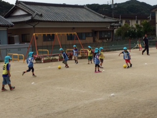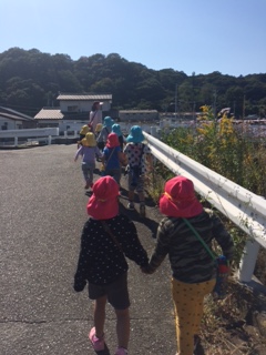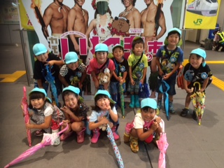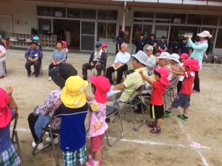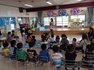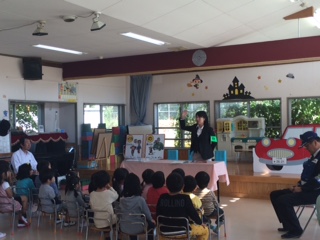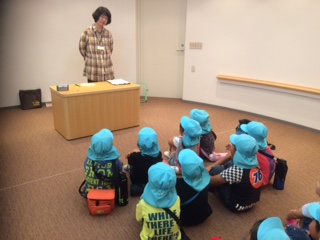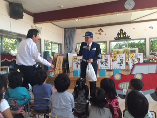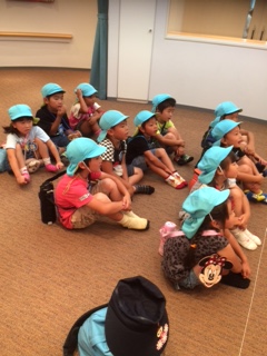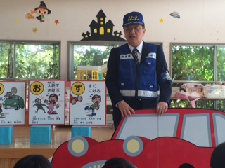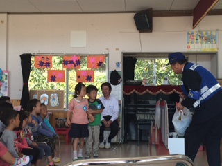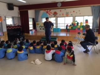 避難した後には、幼稚園に戻って消防士のお兄さんのお話を聞きました。