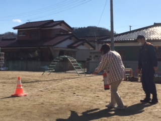 お次は、消火器の消火訓練。