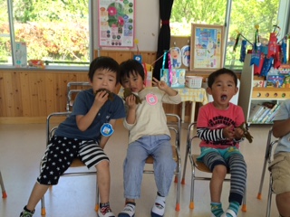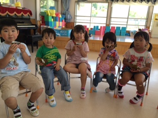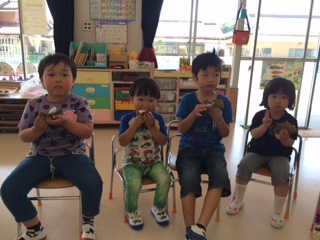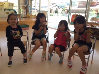 おうたのプレゼントの後に、みんなでおやつを食べました。