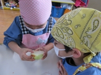 こちらの二人は、玉ねぎの皮が何枚あるか数えています…