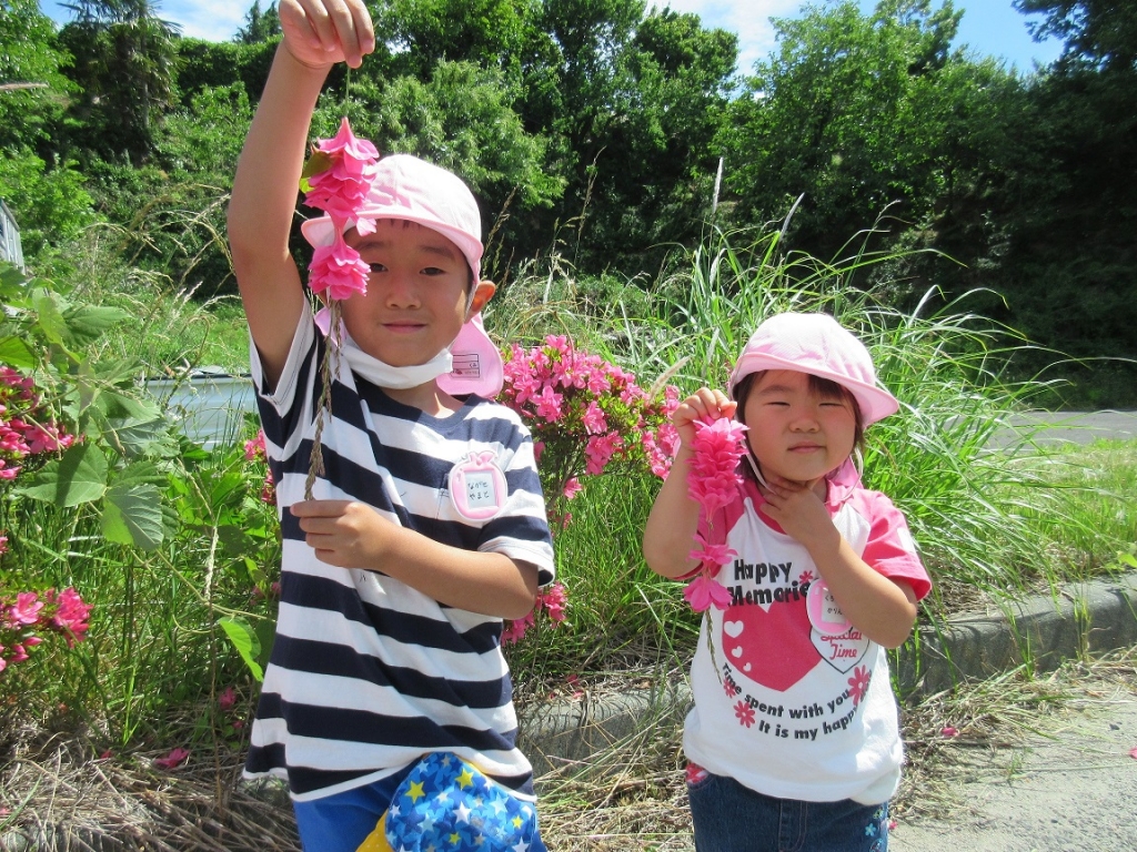 きれいなお花を発見‼ みんな、何かを作っています・・・