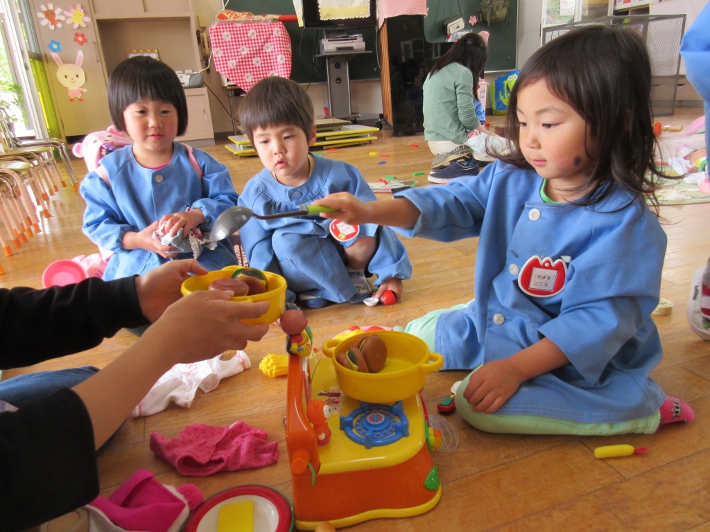 かわいい年少さんは、おいしいごちそうをたくさん作ってくれました![]()