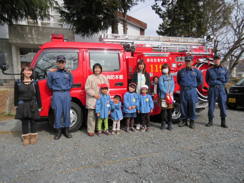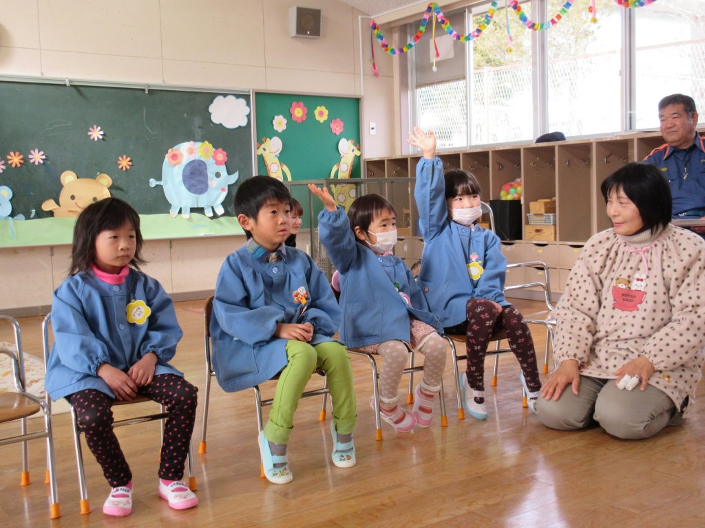 2015年2月26日 15時19分 2月25日(水)に、四倉分署から9名の消防士さんが来園し、人形劇を見せてください