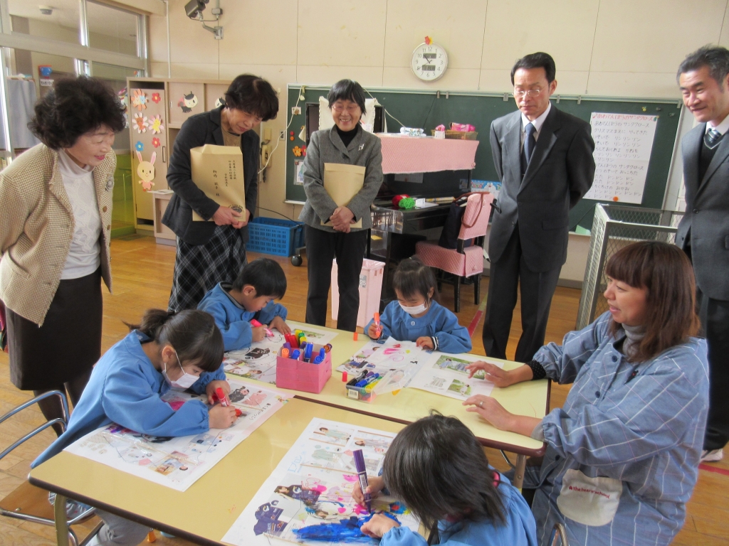 間の園運営の説明を行い、幼稚園と小学校の授業参観をしていただいた後、各評議員の皆様