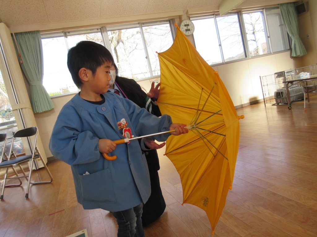 進学、進級を前に 「傘をさしての歩き方」 「安全な冬服の着方」 を教えていただき 「お楽し