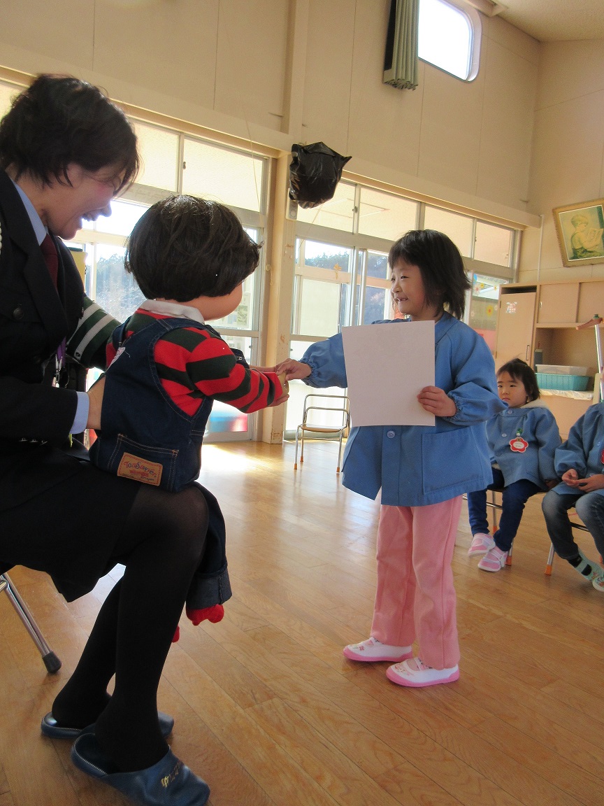 みゲーム」をした後は、いよいよケンちゃんから全員 「交通教室 修了証書」を頂き大喜び!
