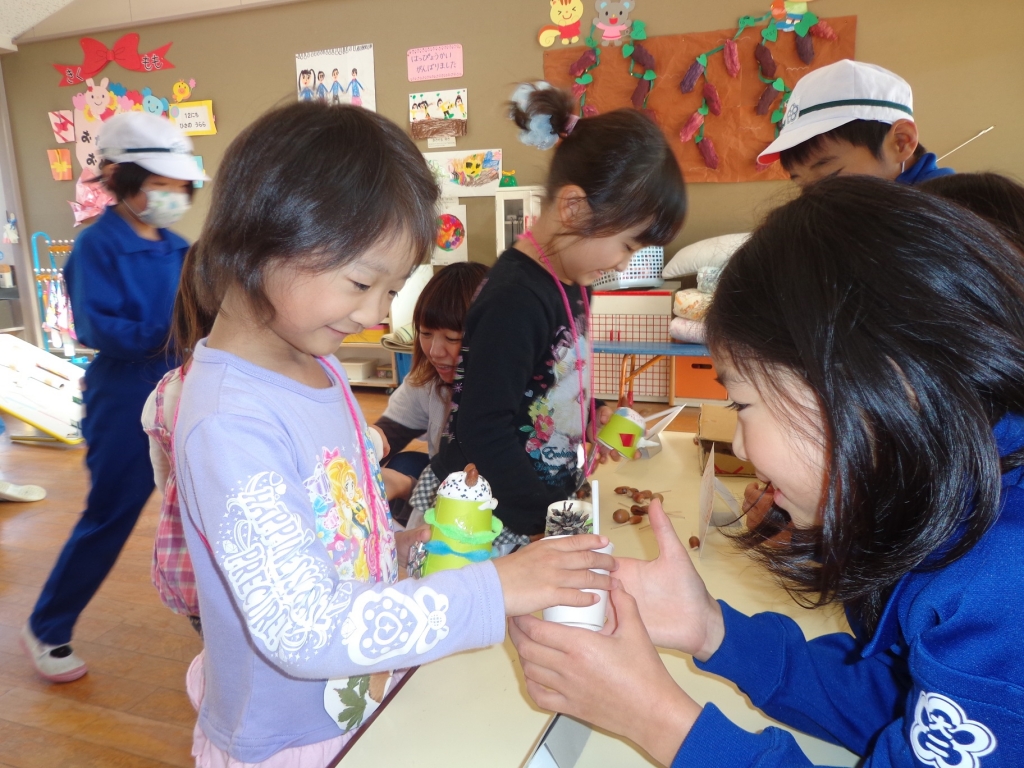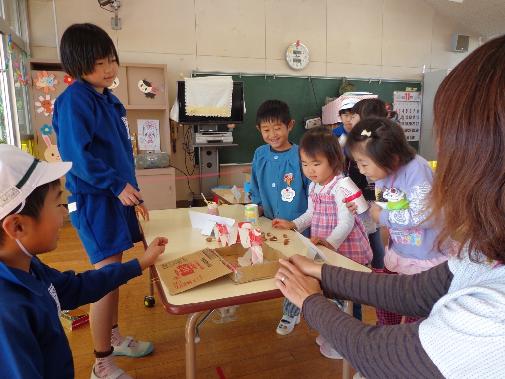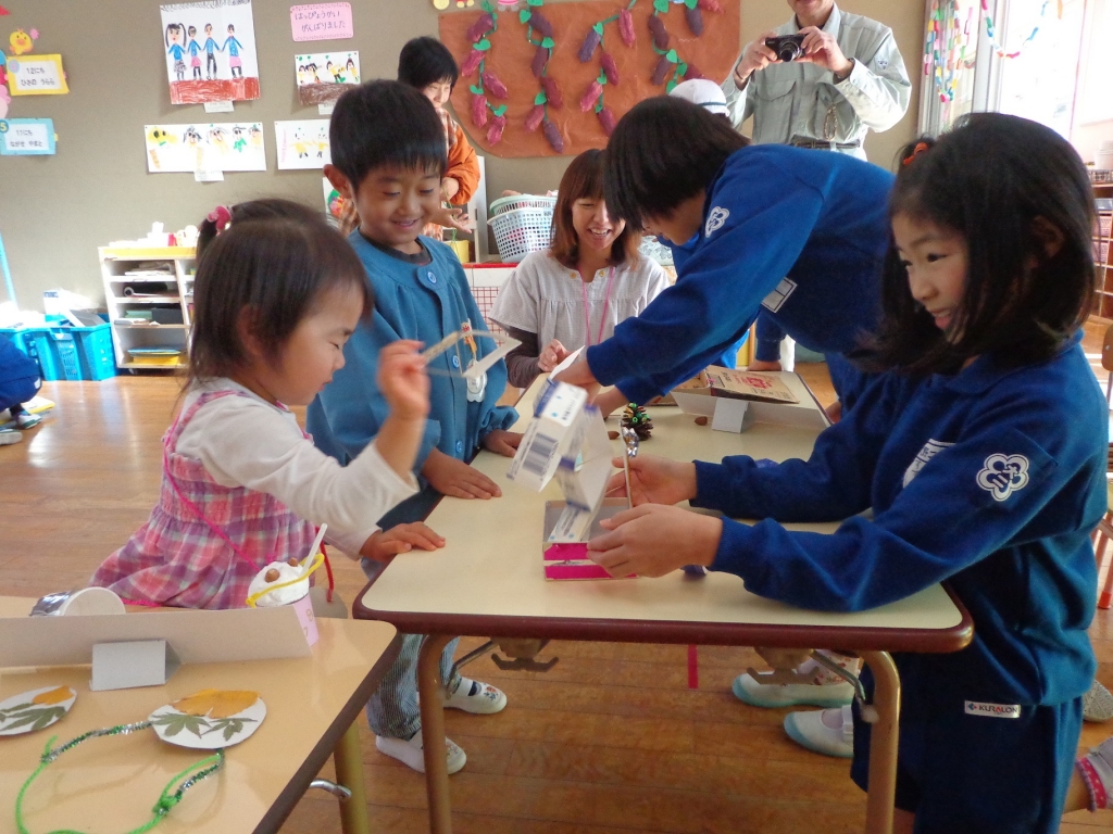 作ったおもちゃを幼稚園の子ども達にプレゼントしてくれ、子ども達は大喜びでした。