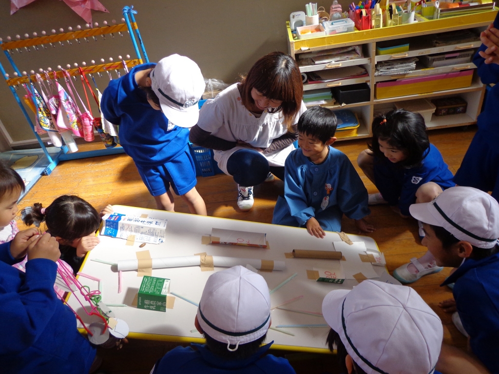 たくさん遊んで大満足だった幼稚園の子ども達。自分たちが作ったおもちゃを「楽し