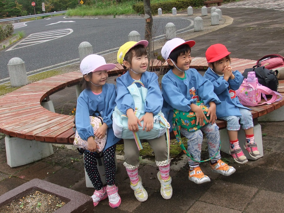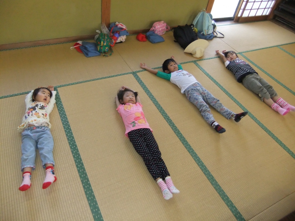 あー疲れた。食後の休息です。これから幼稚園まで歩いて帰ります