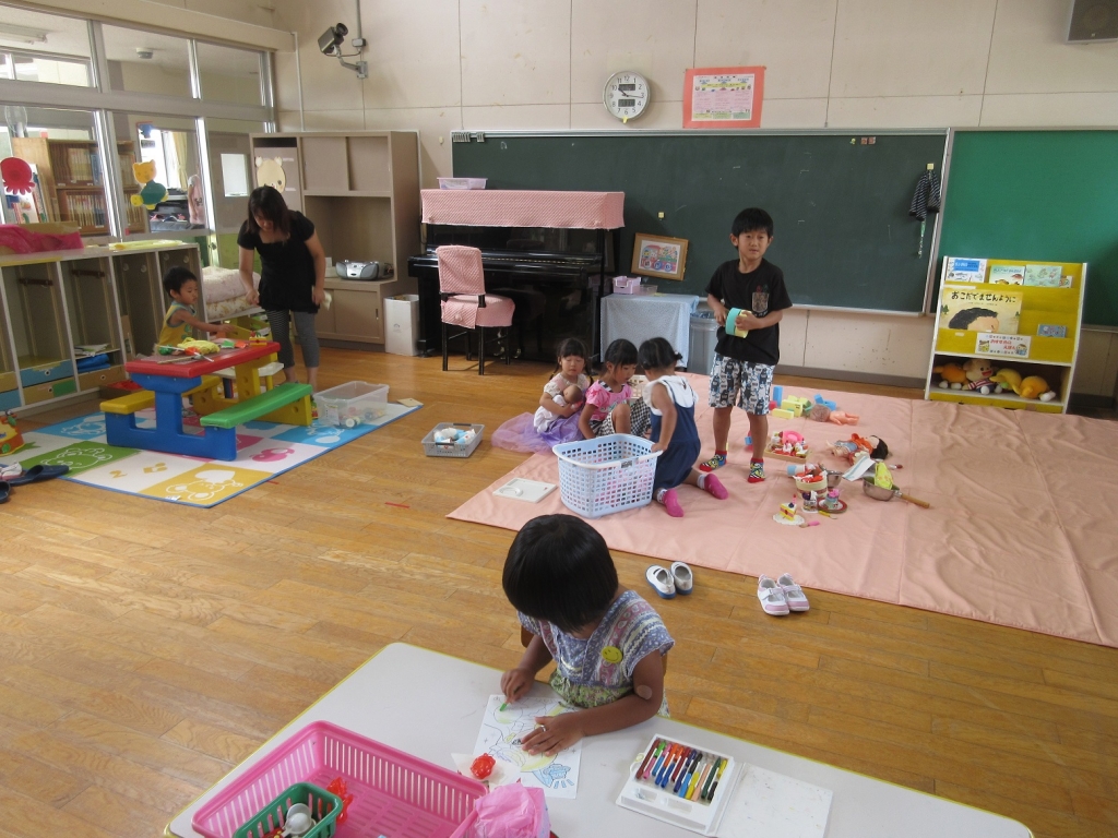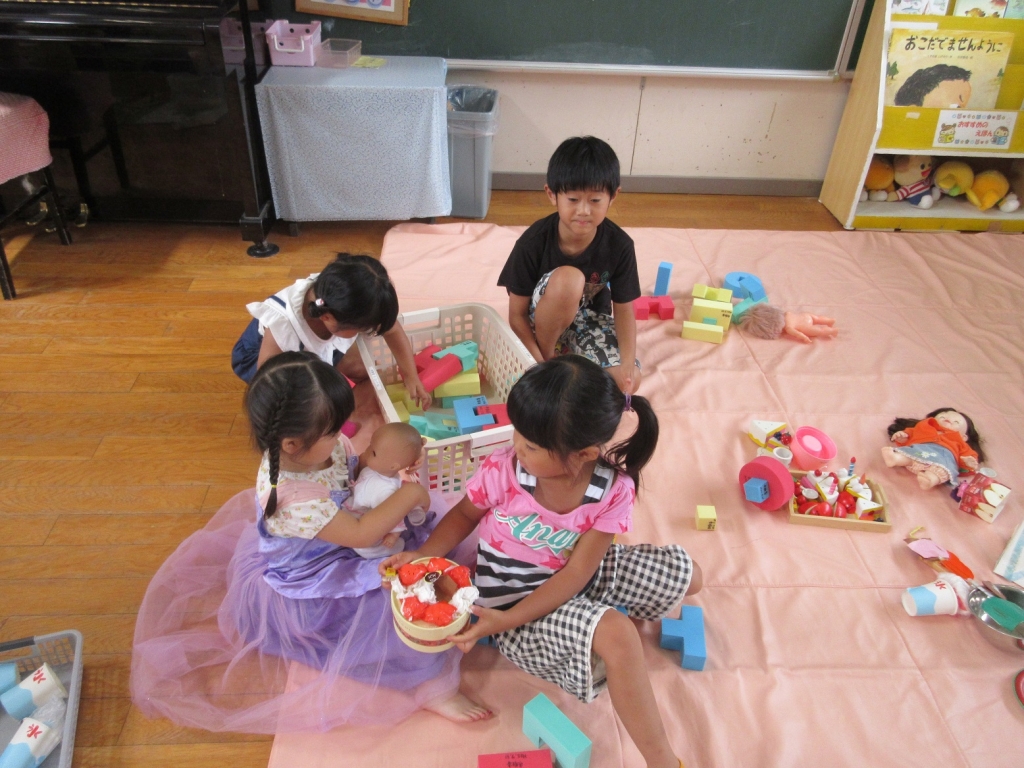 子ども達は、涼しいお部屋でおままごとやブロック遊びなどを楽しんでいました♪