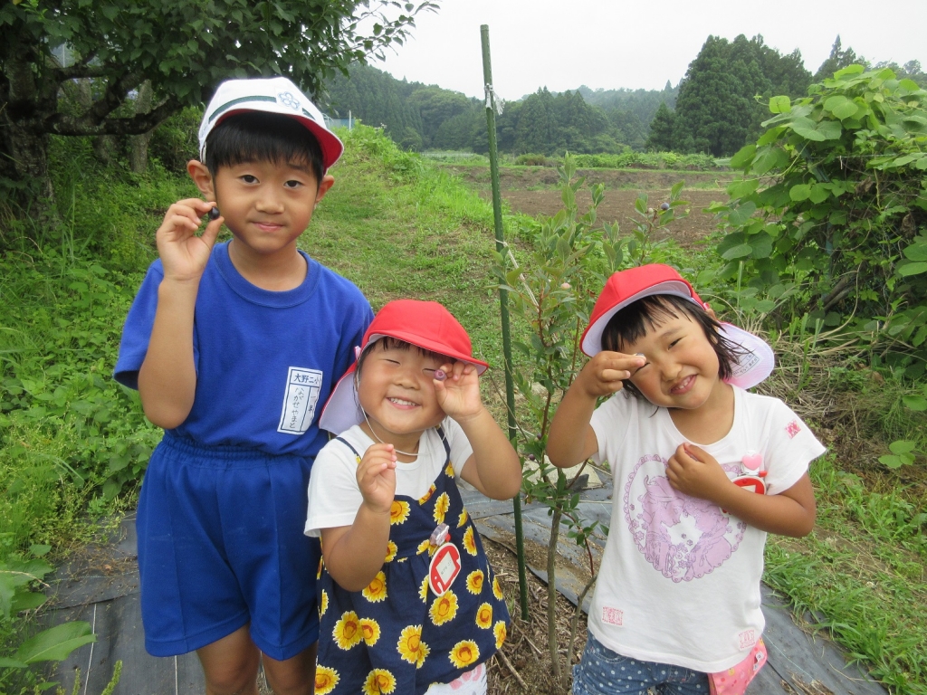 一年生がブルーベリーを採ってくれて嬉しかった経験から、先生にもブルーベリーを採ってくれたのかな、と思います❤