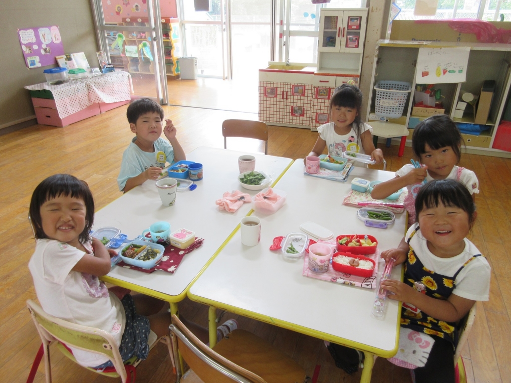 今日のお昼には、在園児宅で収穫した枝豆と、園で収穫したレタスのスープを食べました❤