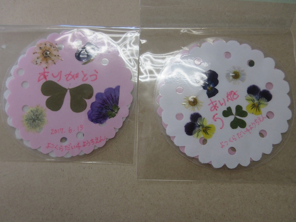 幼稚園に咲いているお花で作った、押し花コースター❤