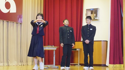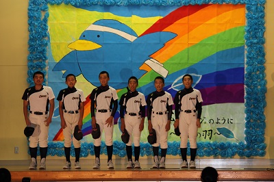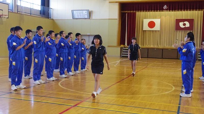 応援団を中心に、全校生で2人にエールを贈りました\^0^/