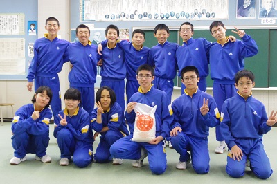 3年生が受験を突破し、無事に志望校に合格してほしいと今年もお米をくださいました。