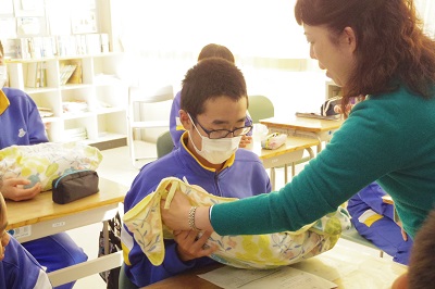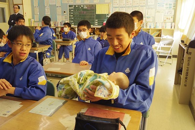 講座の最後には、本物の赤ちゃんと同じ大きさと重さをもつ赤ちゃん人形を抱っこさせてもらいました。