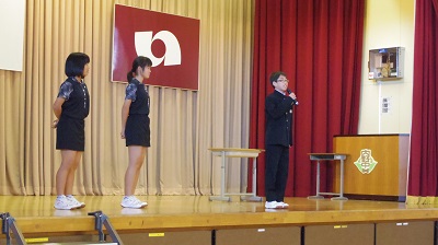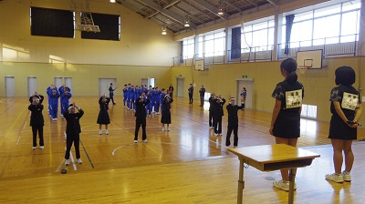 会長激励のことばの後、新メンバーで新しい「全校応援」が・・・^-^