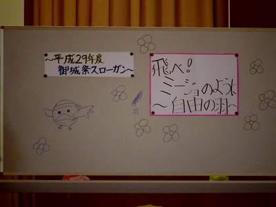 昨日、文化祭実行委員会から全校生に向けて、平成29年度御城祭について話がありました。